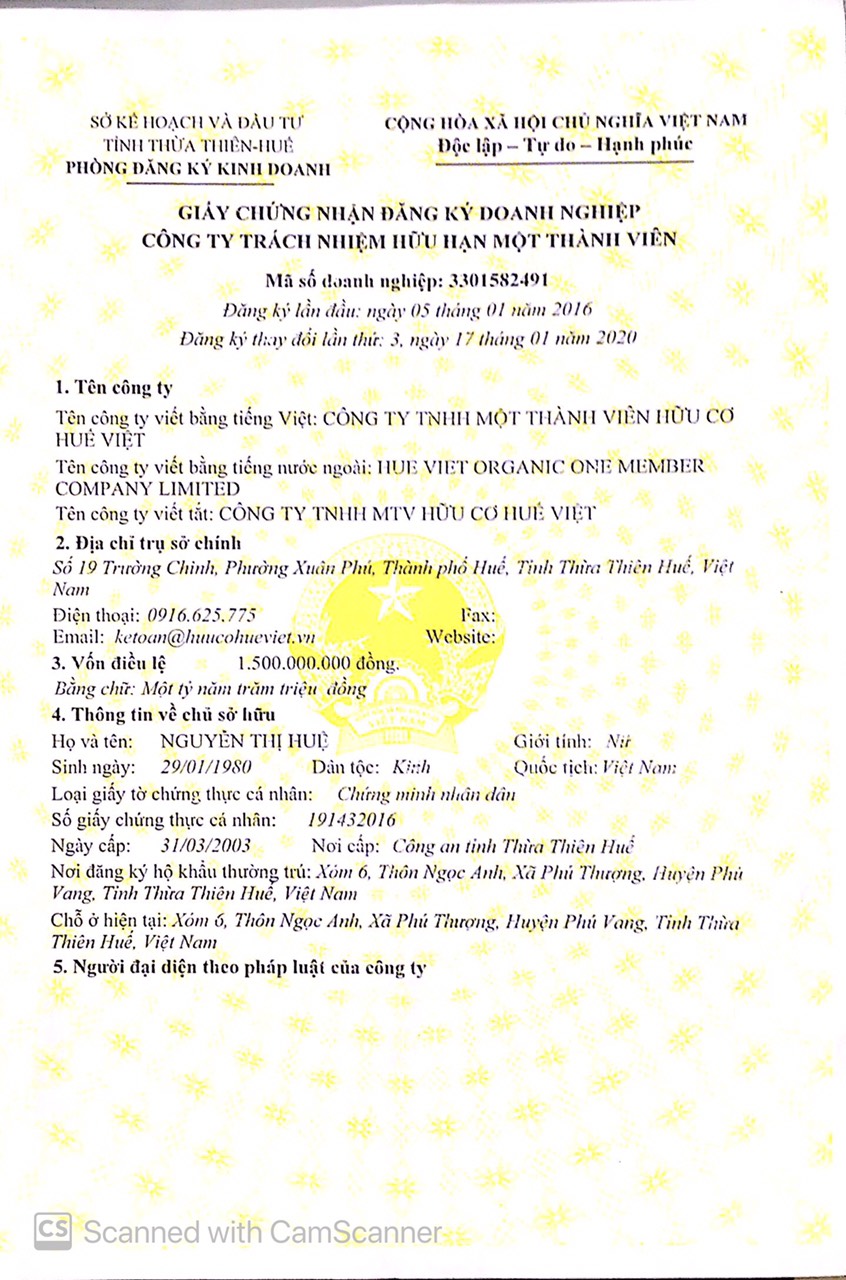 Nhà cung cấp Công ty TNHH MTV Hữu Cơ Huế Việt
