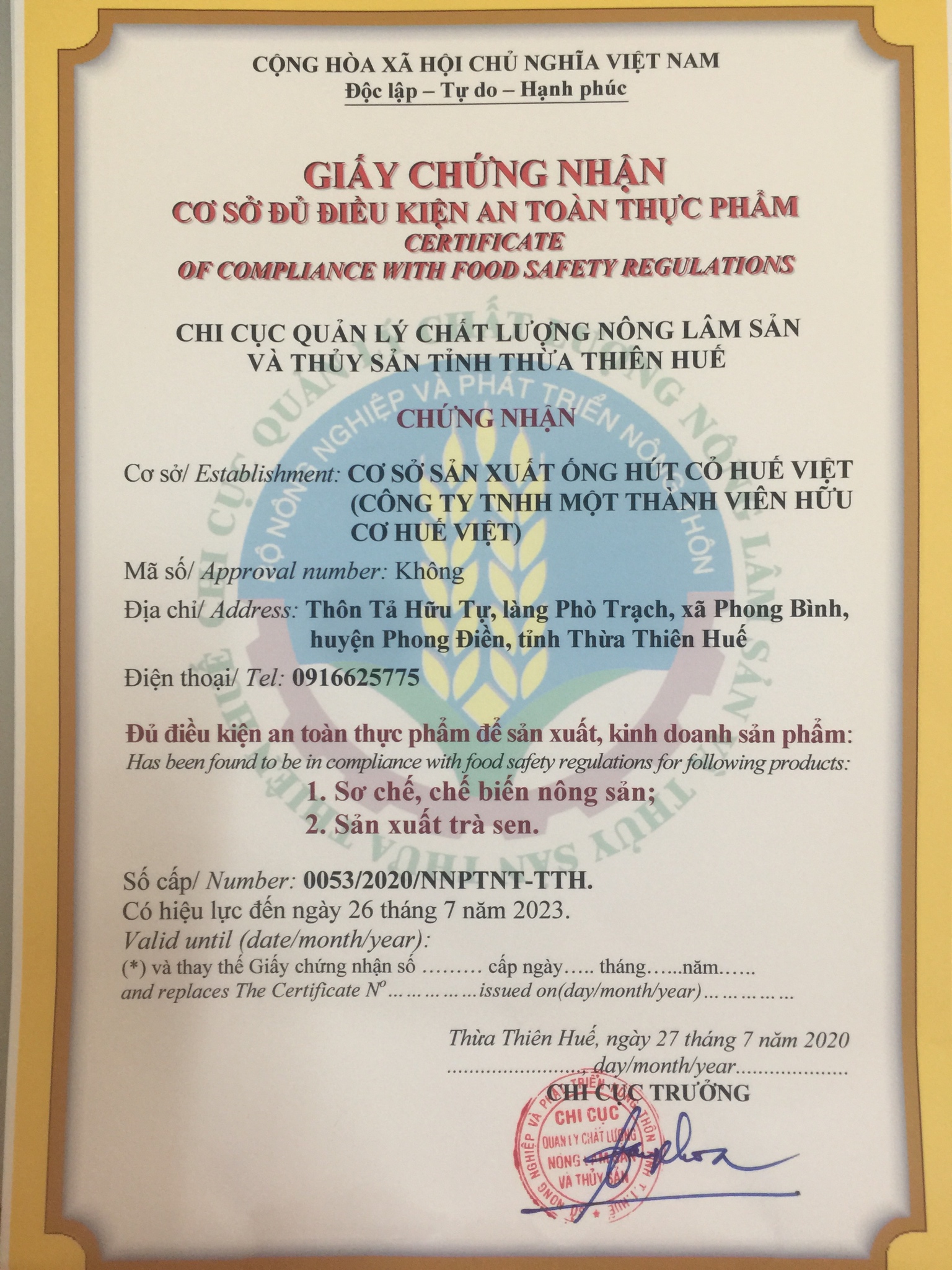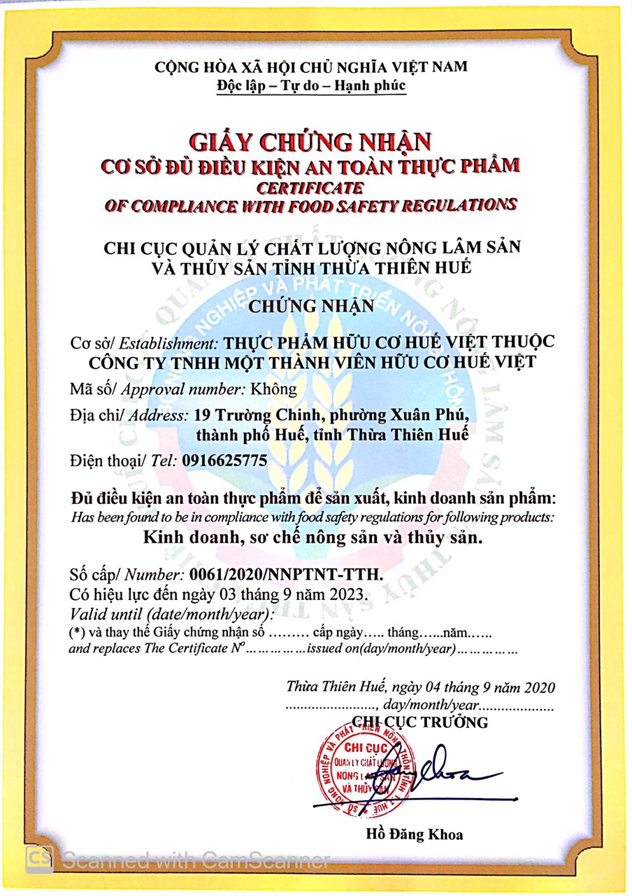 Công ty TNHH một thành viên hữu cơ Huế Việt xin kính chào quý khách, cảm ơn quý khách đã sử dụng sản phẩm của chúng tôi!