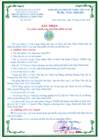 + Đơn vị tiếp nhận sơ chế, đóng gói: Công ty TNHH MTV hữu cơ Huế Việt