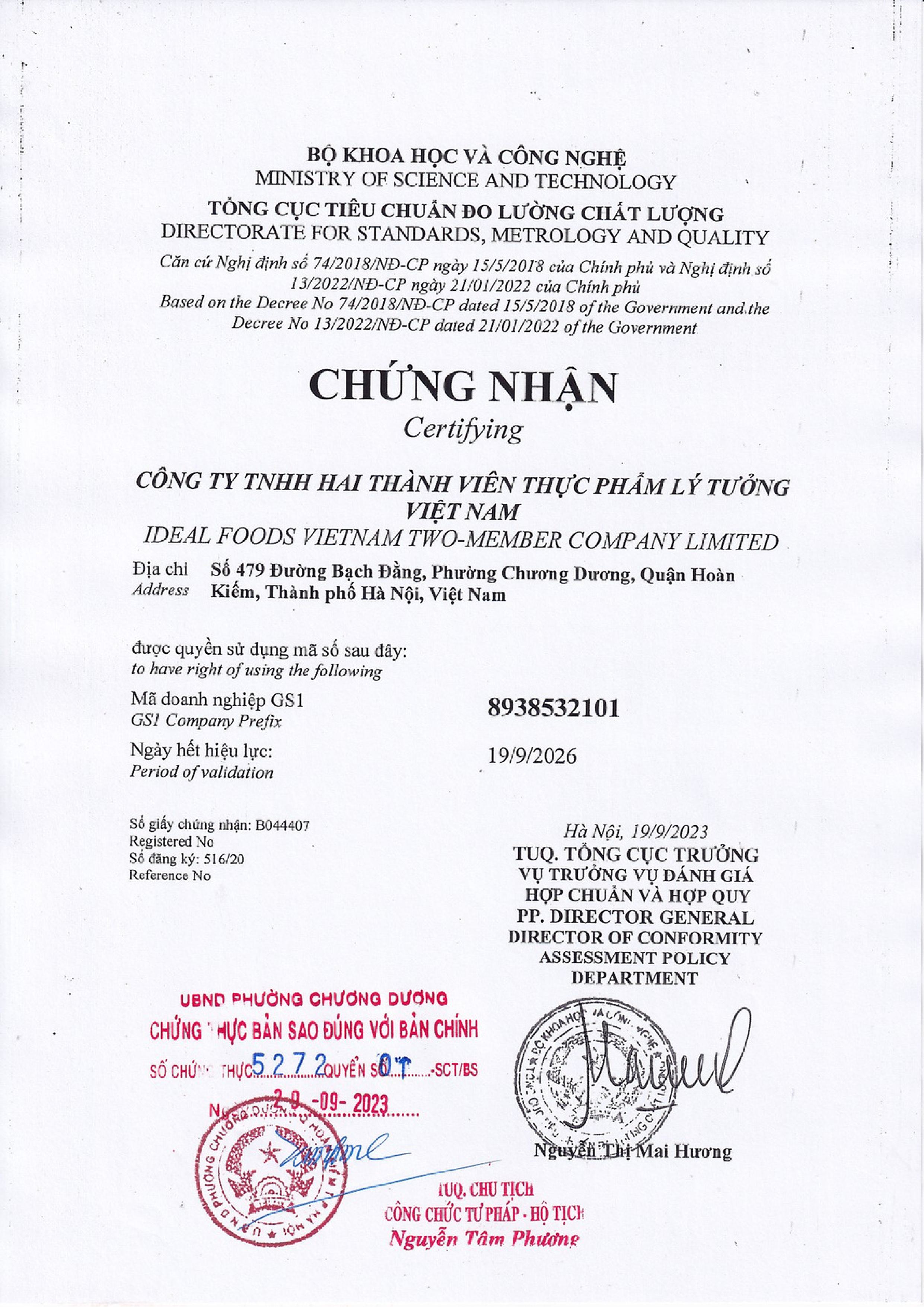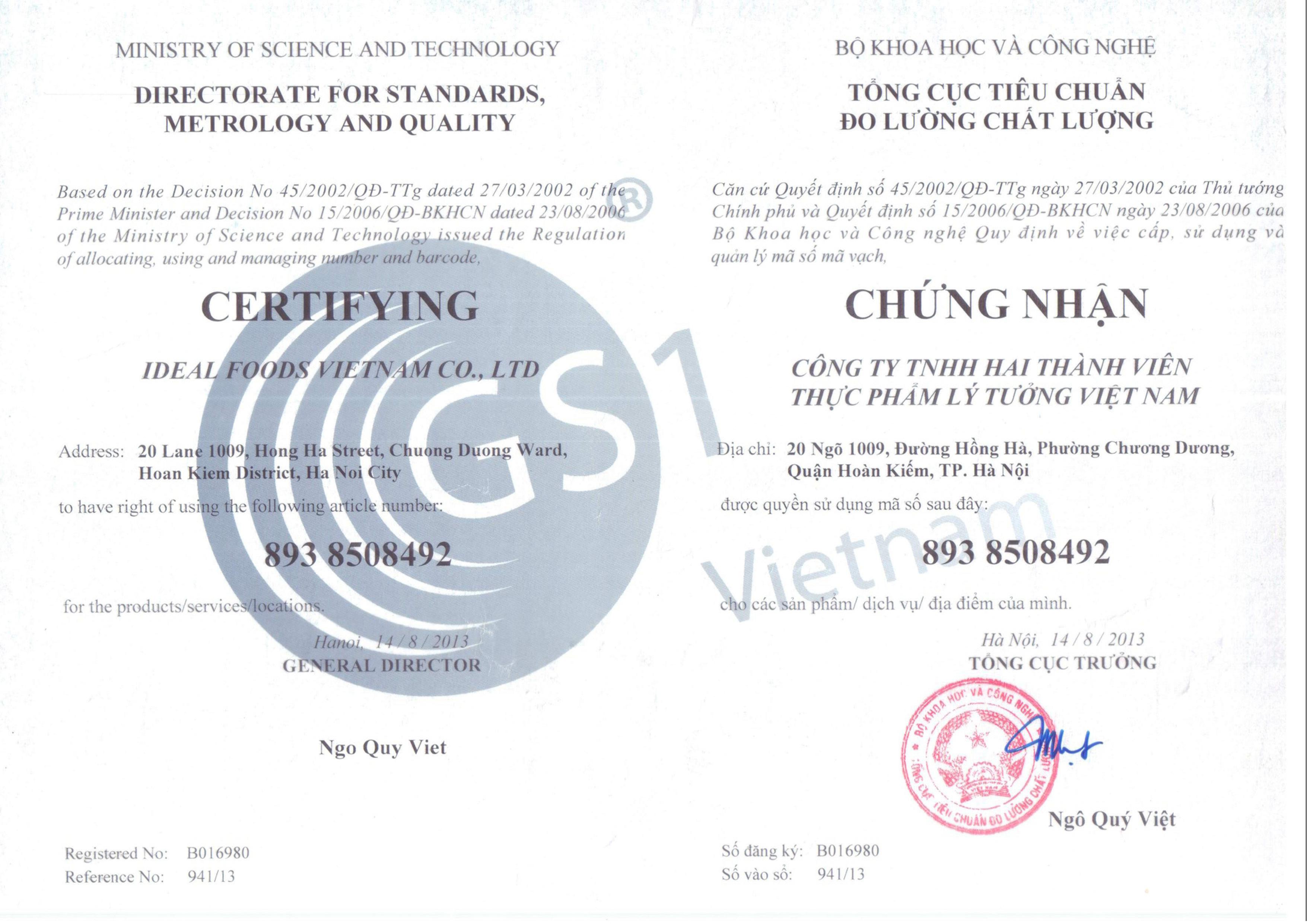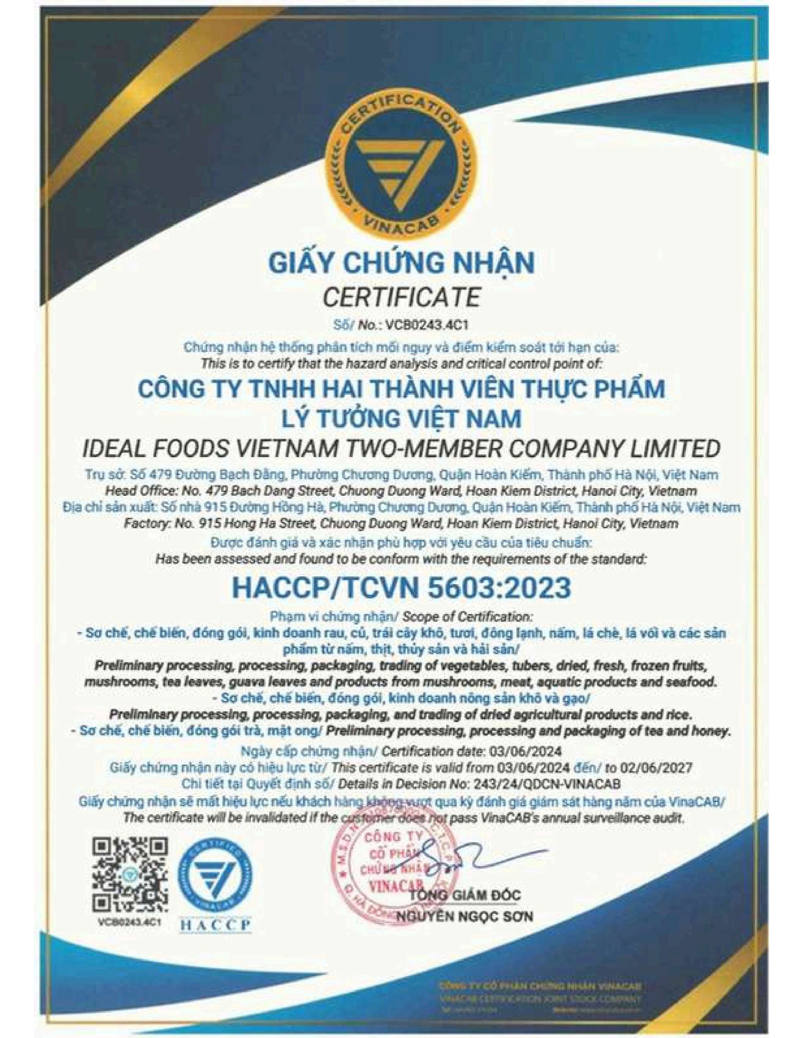 Nhà cung cấp Công ty TNHH hai thành viên thực phẩm Lý Tưởng Việt Nam