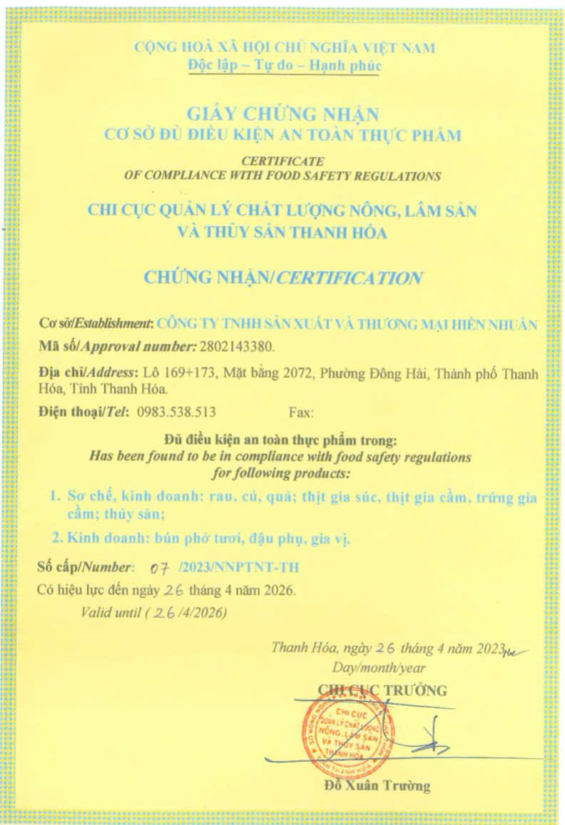 Nhà cung cấp Công ty TNHH sản xuất và thương mại Hiền Nhuần