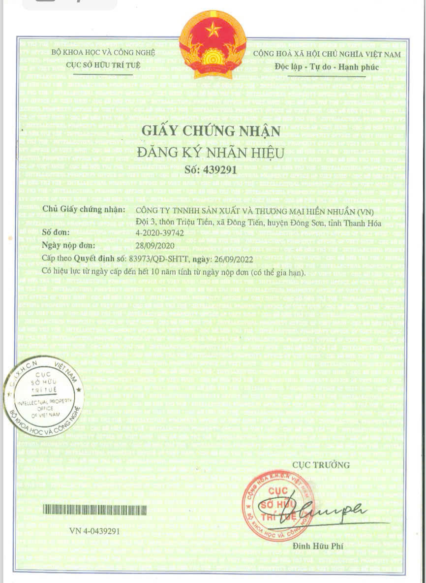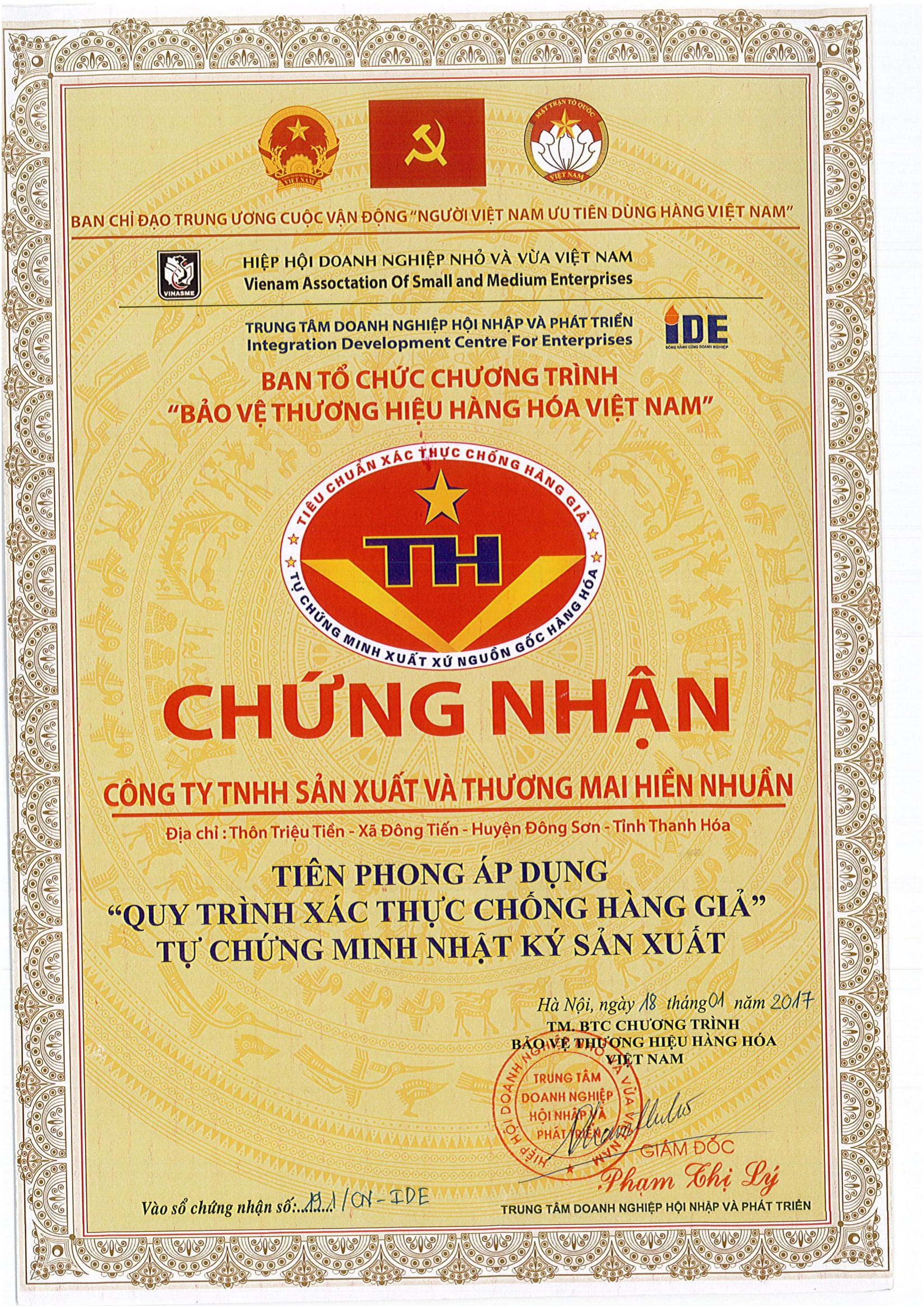 Công ty TNHH Sản xuất và Thương mại Hiền Nhuần kính chào quý khách, cám ơn quý khách đã sử dụng sản phẩm của chúng tôi!